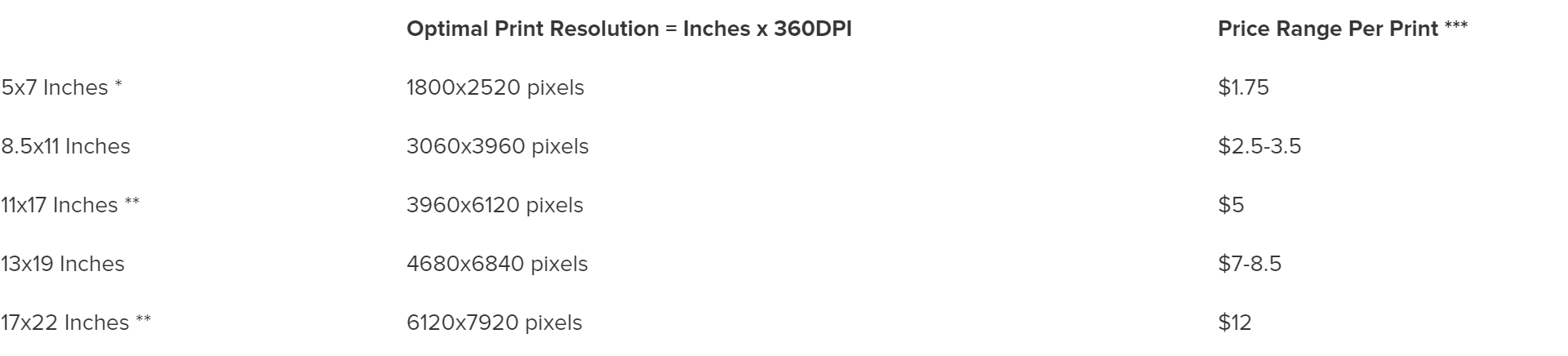 - Choose how many prints you'd like in any combination, remember no minimum!