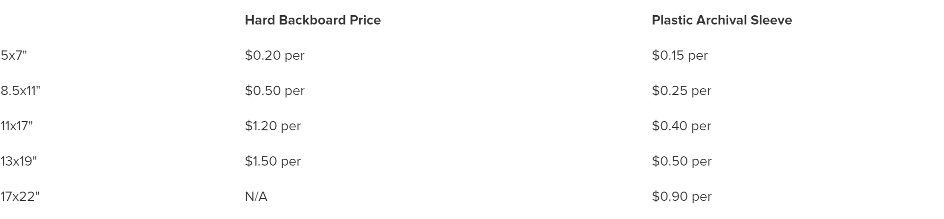 - If you want any art protection items such as a hardback or plastic sleeve, please add those up too.
