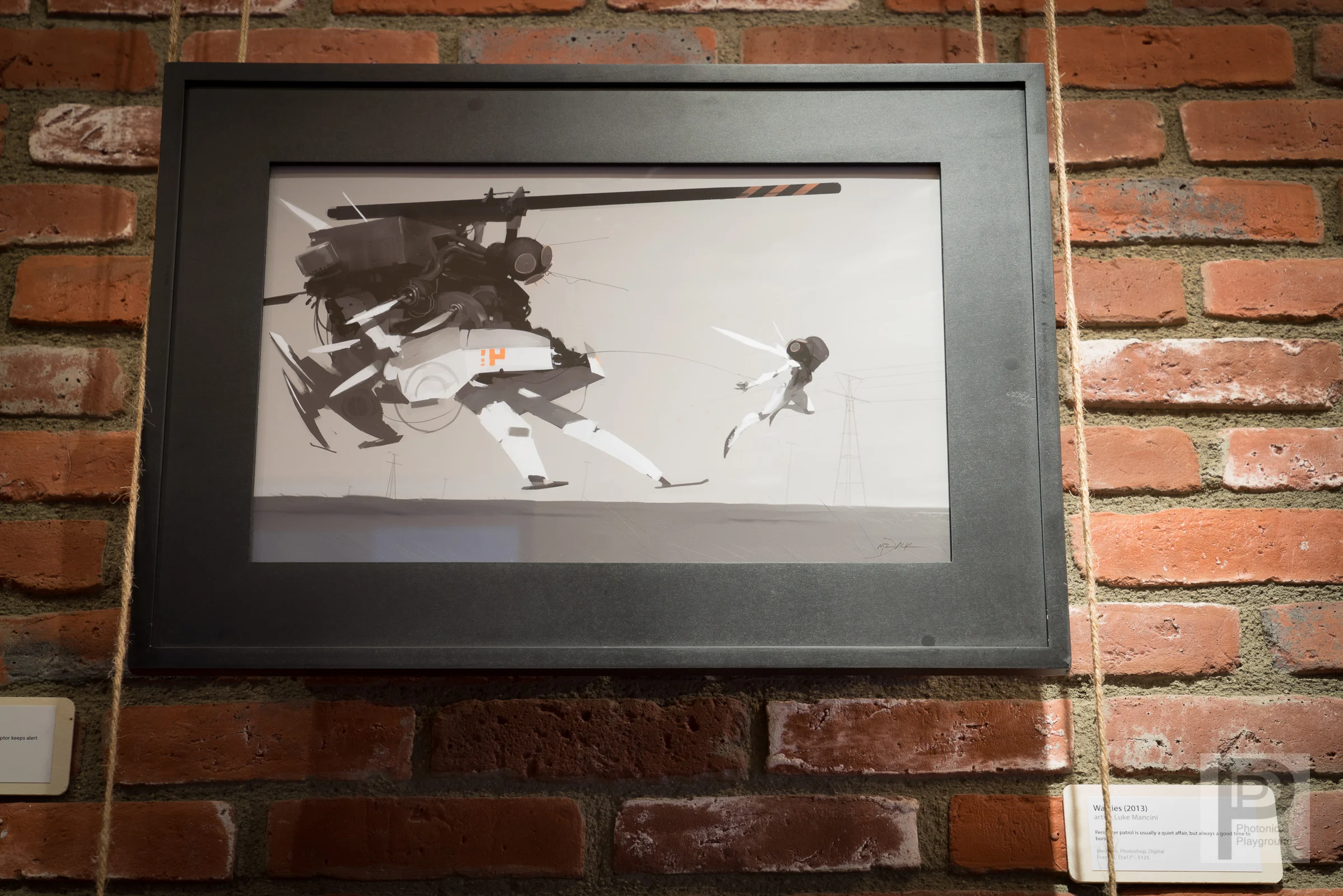 Framed giclée print of "Walkies" digital painting, 11x17" signed by Luke Mancini. Description: Perimeter patrol is usually a quiet affair, but always a good time to bond.