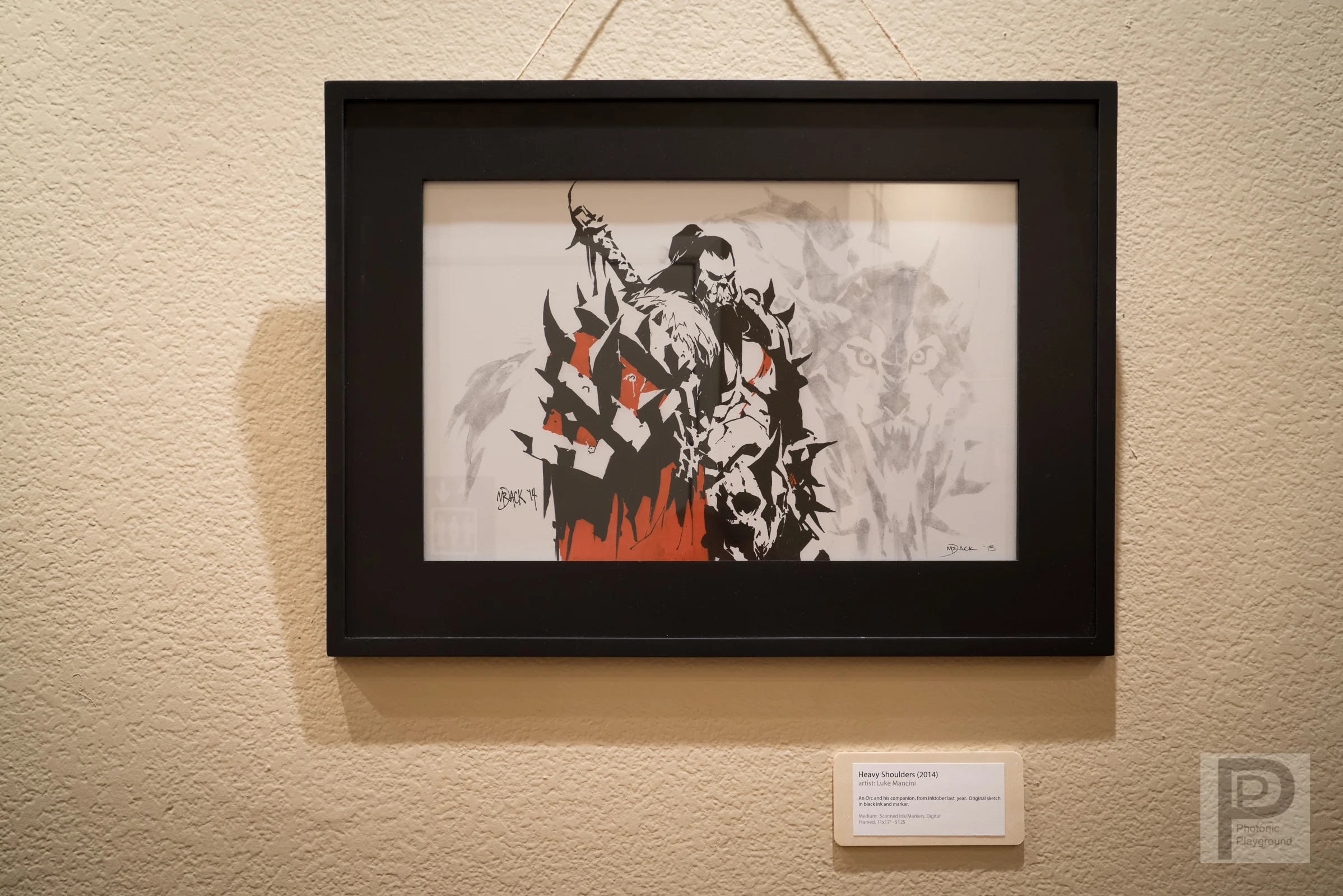 Framed giclée print of "Heavy Shoulders" scanned ink and markers, 11x17" signed by Luke Mancini. Description: An Orc and his companion, from Inktober last year. Original sketch in black ink and marker.