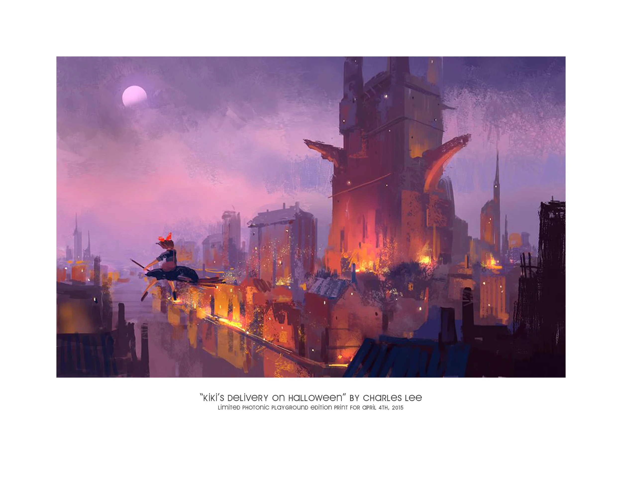 8.5x11" print of "Kiki's Delivery on Halloween" on Epson Ultra Premium Luster semi-gloss paper with archival ink, signed by Charles Lee. Limited print run of 5. Frame ready with 0.5" minimum white border.