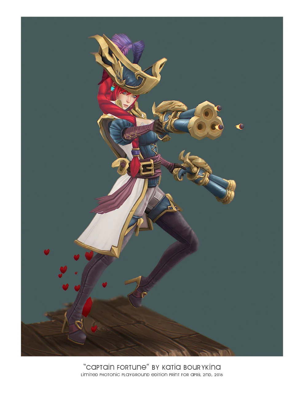 Captain Fortune is a skin fanart from one of my favorite League of Legends champions, Miss Fortune, this skin was designed by Paul Kwon and the splash art by Jason Chan, I combined both designs to get her final look.