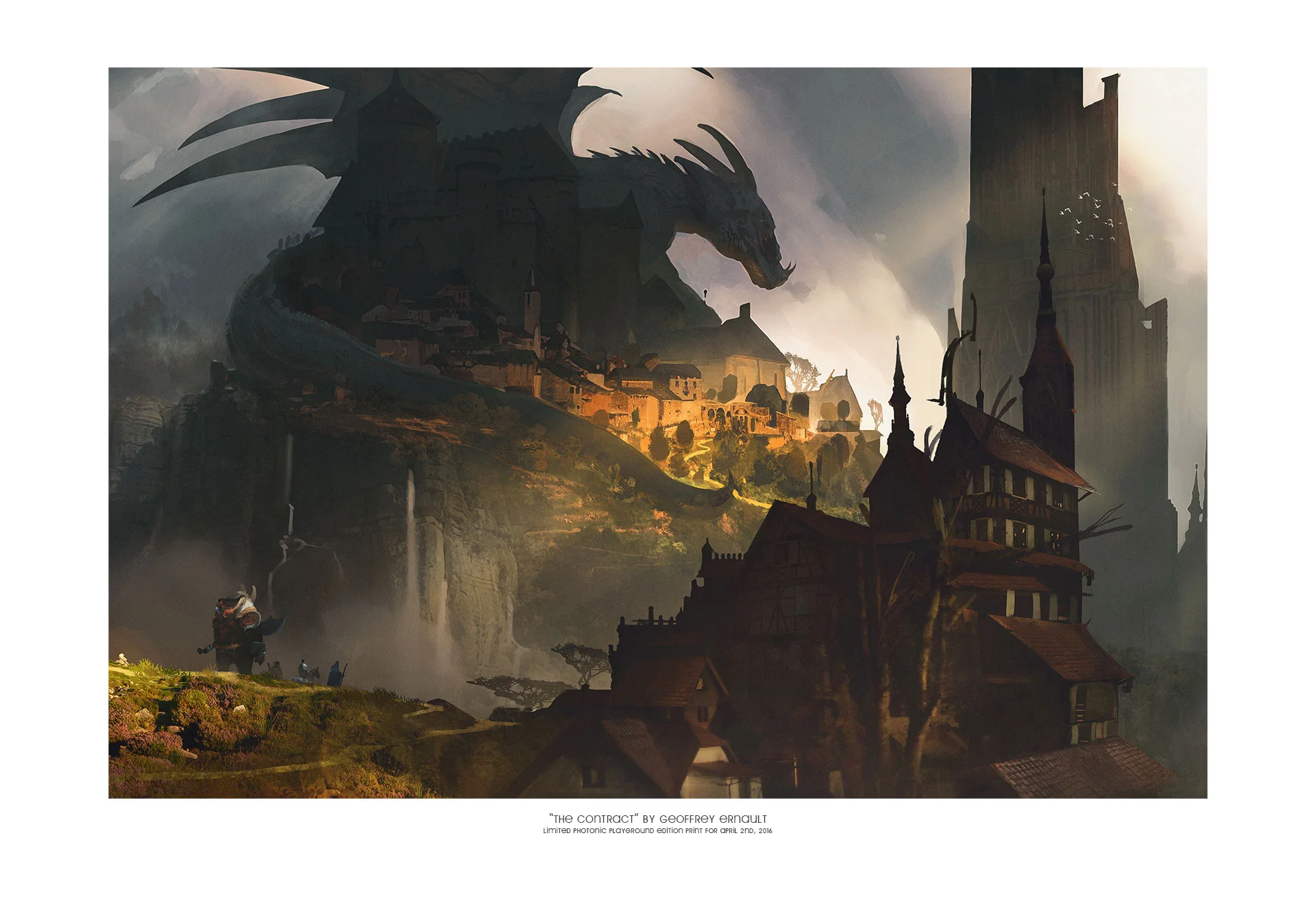 The idea for this one was simply that a dragon was overlooking a town, and to play a lot with scale. I wanted to keep the story elements loose