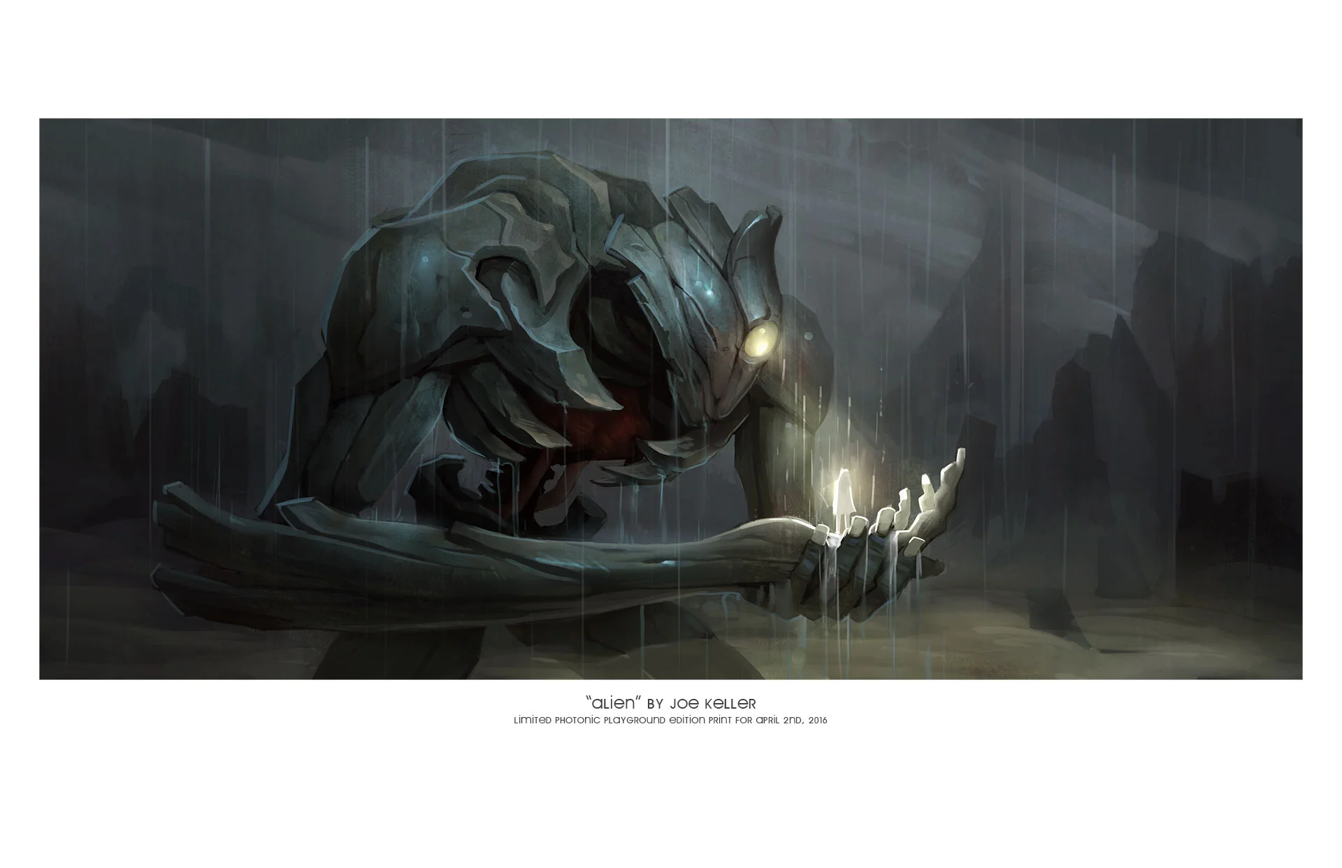 Description: Personal painting of an alien. I wanted to do something more atmospheric with a simple environment.
