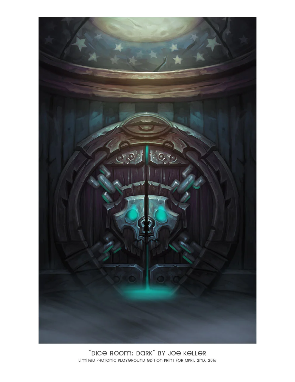 "Dice Room: Dark" a premium 8.5x11" giclée print on Cold Press Bright matte paper. 100% Acid and lignin free, archival quality. Limited to 5 prints, signed and numbered.