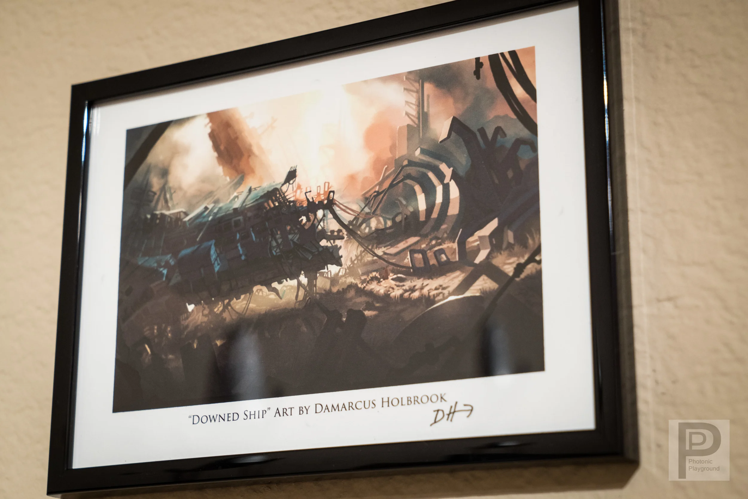 Framed giclée print of "Downed Ship" digital, 5x7" signed by Damarcus Holbrook.