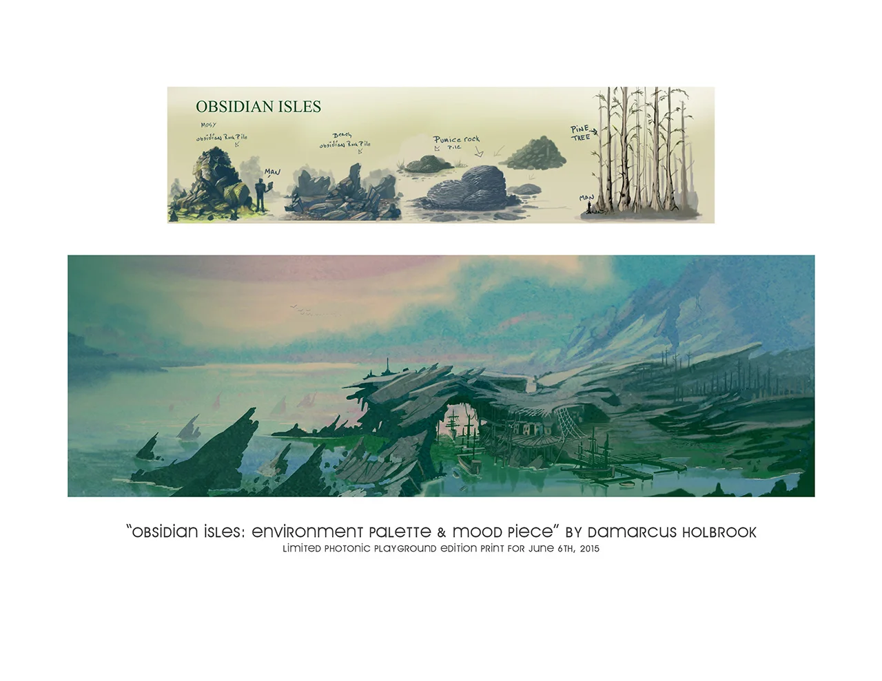 8.5x11" giclée flat print of "Obsidian Isles" signed by Damarcus Holbrook. Limited gallery edition of 5 prints, including the #1 print above. ONLY TWO LEFT!
