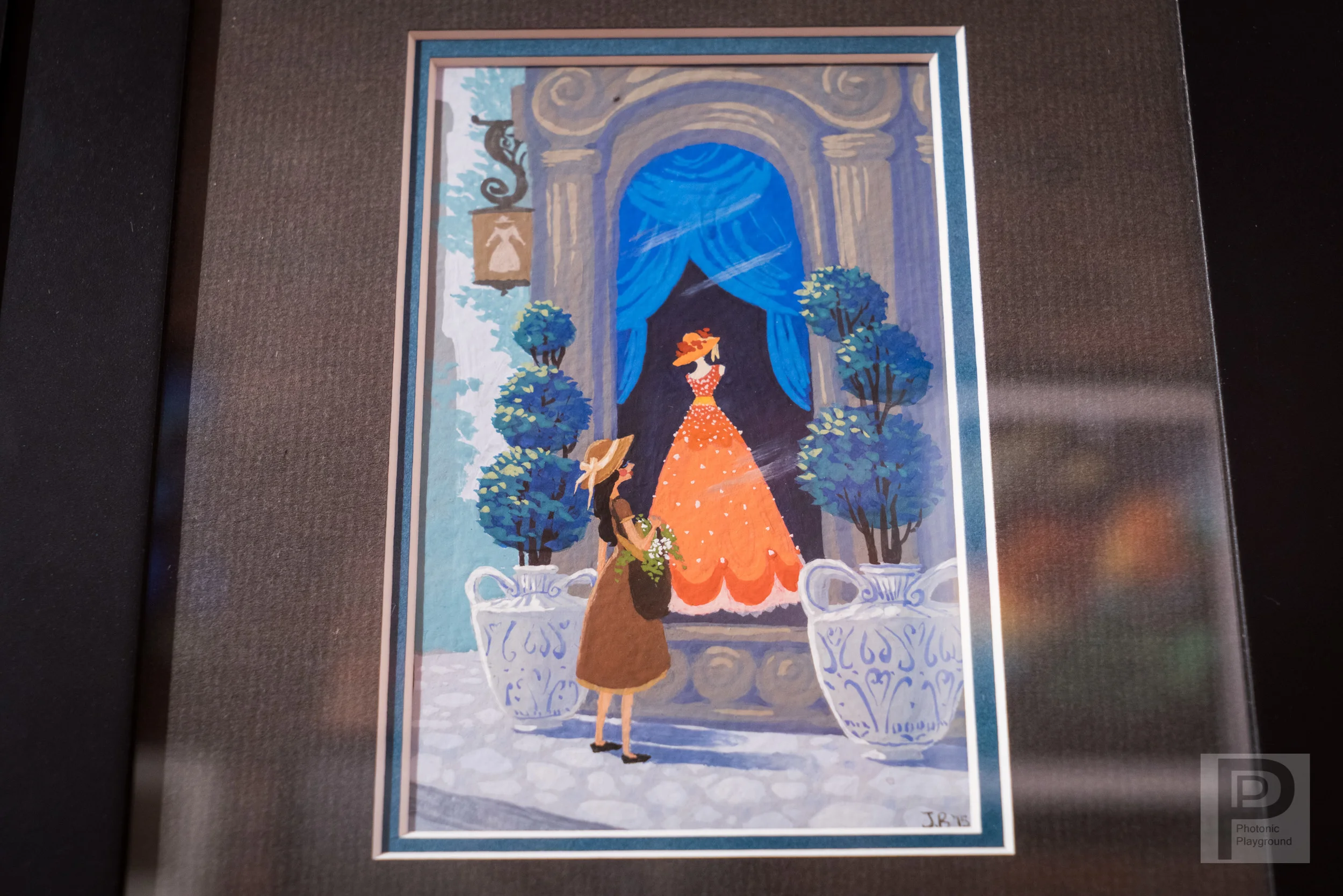 ORIGINAL PAINTING: Framed and double matted gouache painting of "Window Shopping", 8x10" by Janna Bock.