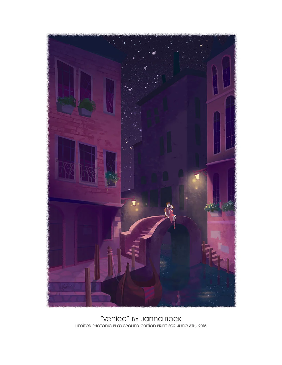 8.5x11" giclée flat print of "Venice" signed by Janna Bock. Limited gallery edition of 5 prints.