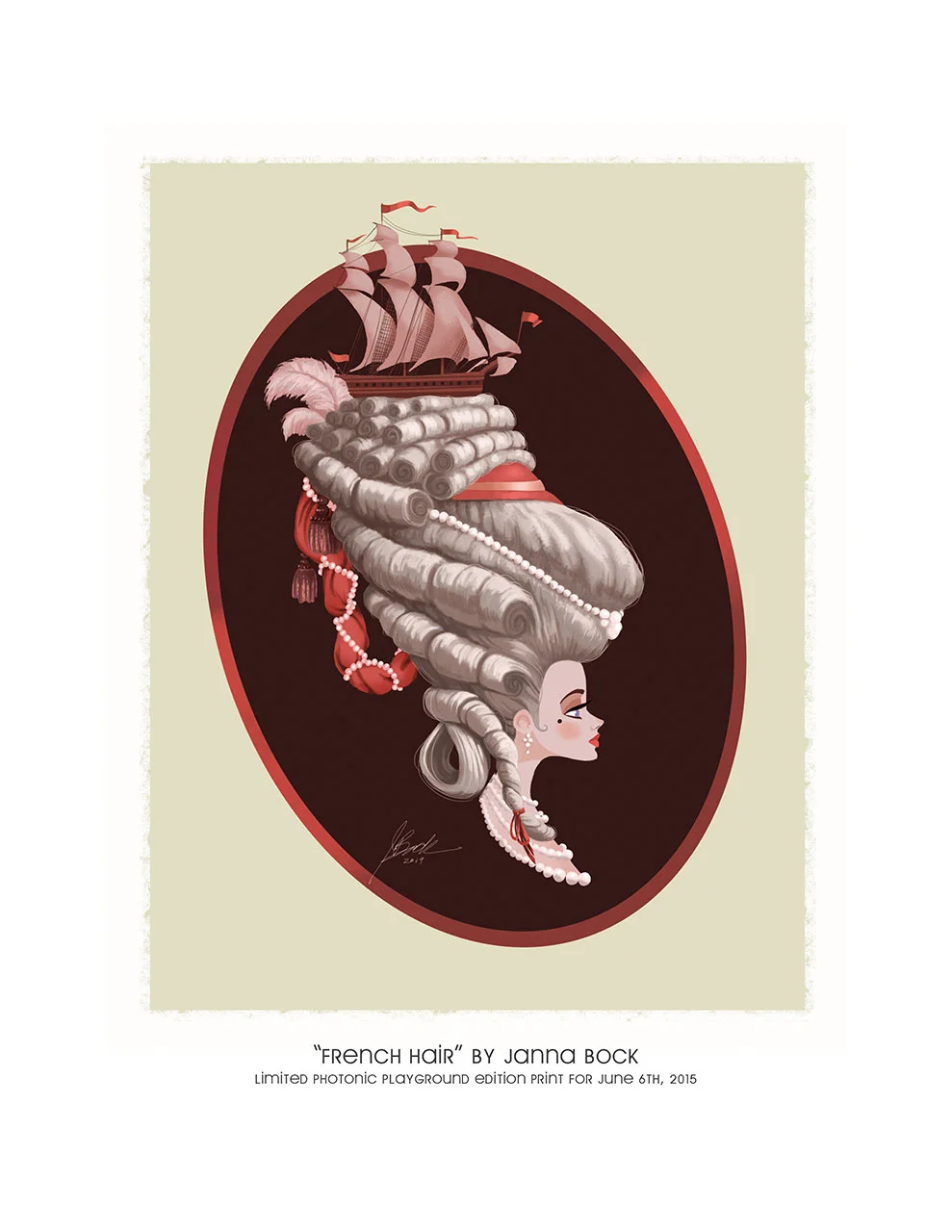8.5x11" giclée flat print of "French Hair" signed by Janna Bock. Limited gallery edition of 5 prints.